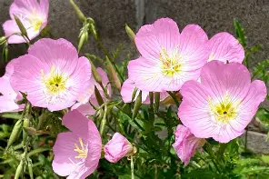 ヒルザキツキミソウは、春から初夏にかけて淡いピンク色の花を咲かせる可憐な多年草です。